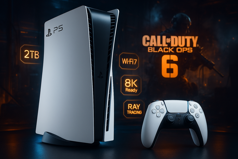 Meet the Sony PlayStation®5 Pro Console (2TB) + Call of Duty®: Black Ops 6 Bundle- built for players who want ultra-smooth performance today and future-ready power for tomorrow. With an upgraded GPU, advanced ray tracing, AI image upscaling, and 8K-ready output, this PS5 Pro makes your favourite worlds look sharper, brighter, and more lifelike than ever. Packed with 2TB storage, it holds more games, captures, and DLC with room to spare. Pair that with Wi-Fi 7 support for lower latency and more stable online play—and you’re set for the win.